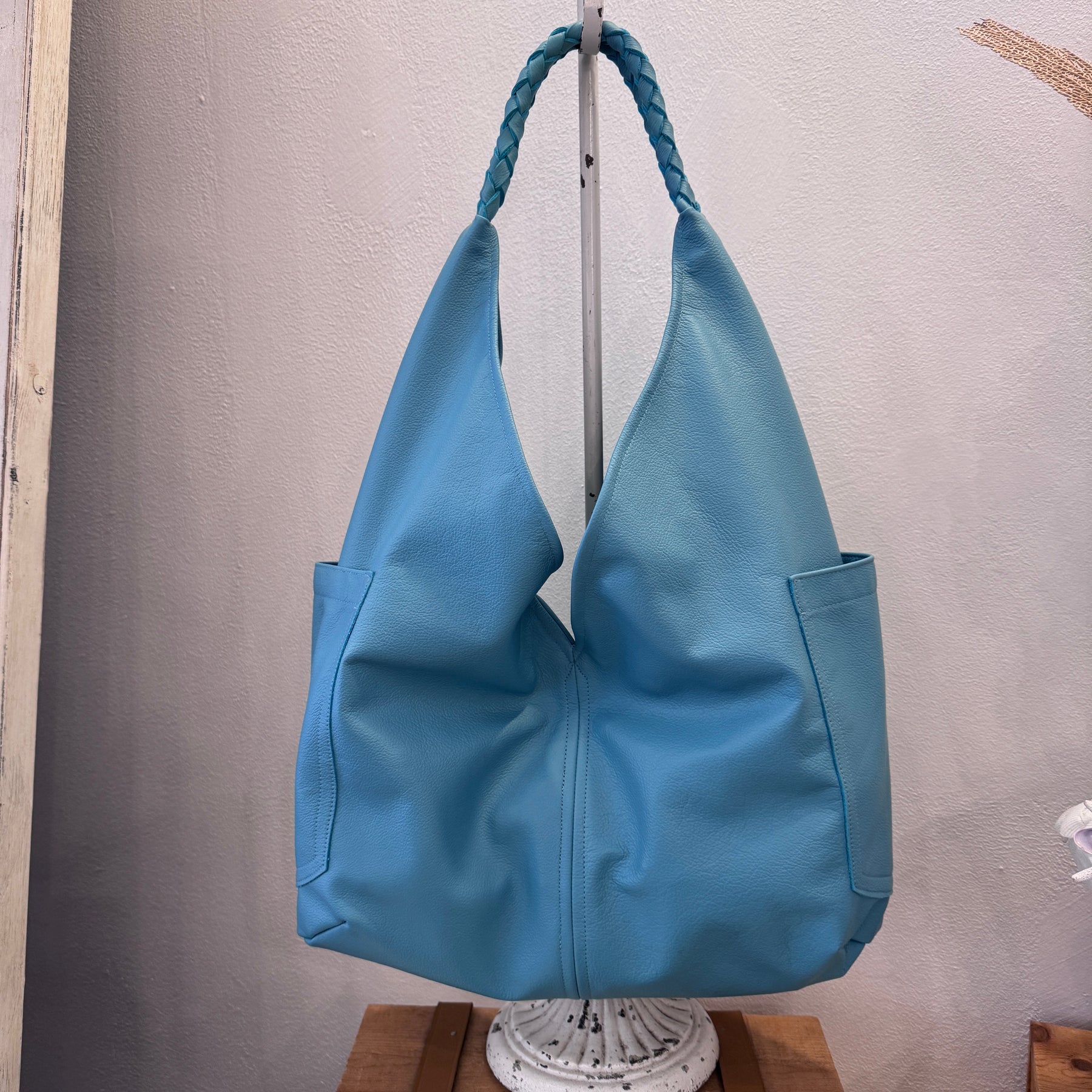 I purchased the Boho Jill in blue metallic leather via text message with the store. The bag is beautiful! I appreciate the two outside pockets for easy accessibilty. It also has two interior pockets for your keys or smaller item. The interior is very roomy and a magnetic snap keeps it shut. This is my fourth Satchel bag. I appreciate handmade, quality work over big name labels.