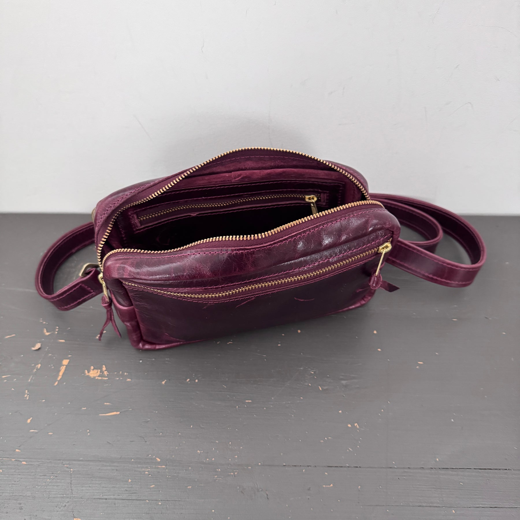 • pig suede & raw leather interior