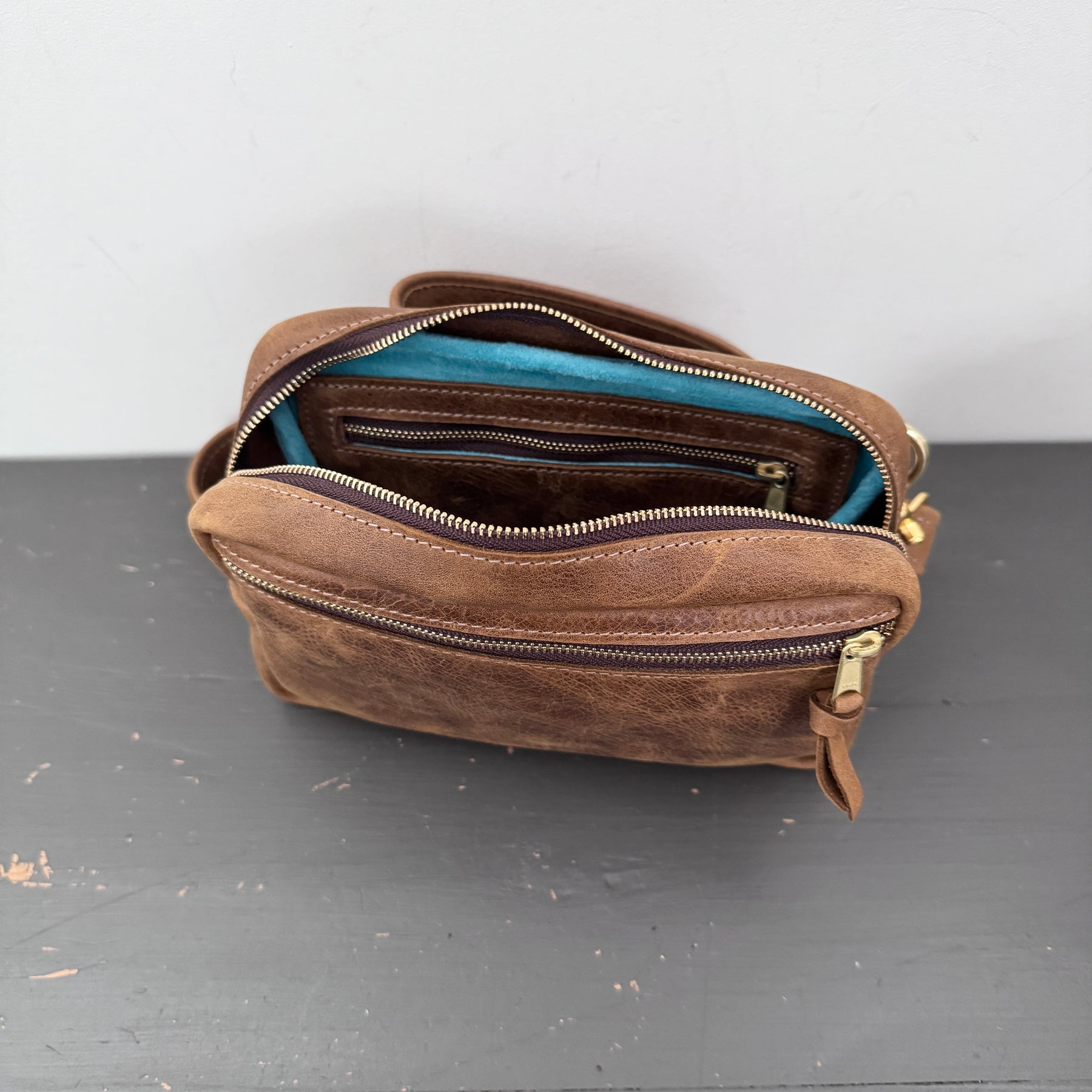 • pig suede & raw leather interior